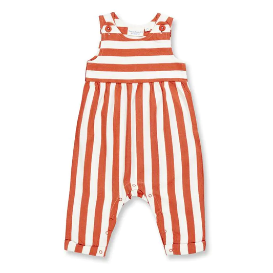 BADU ärmelloser Baby-Romper in rostrot gestreift aus Biobaumwolle - Sense Organics