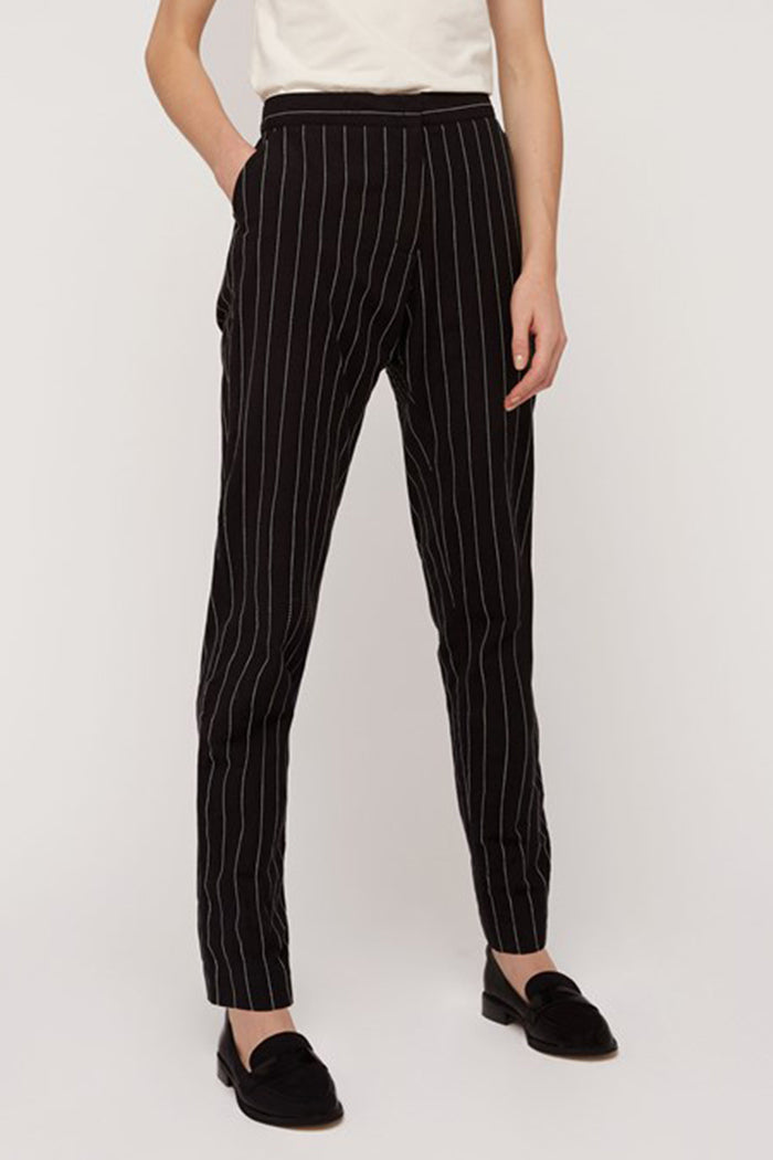 Croin Pinstripe Hose Damen – Handgewebt, People Tree, Schwarz-Weiß, Gummibund, Nachhaltige Stoffhose